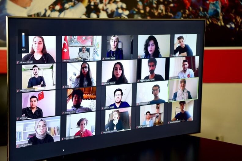Büyükşehir Belediye Başkanı Selahattin Gürkan, 19 Mayıs etkinlikleri kapsamında Büyükşehir Belediyesi Kadın Aile Gençlik Şube Müdürlüğü bünyesindeki 19 genç ile video konferans yoluyla bir araya geldi.