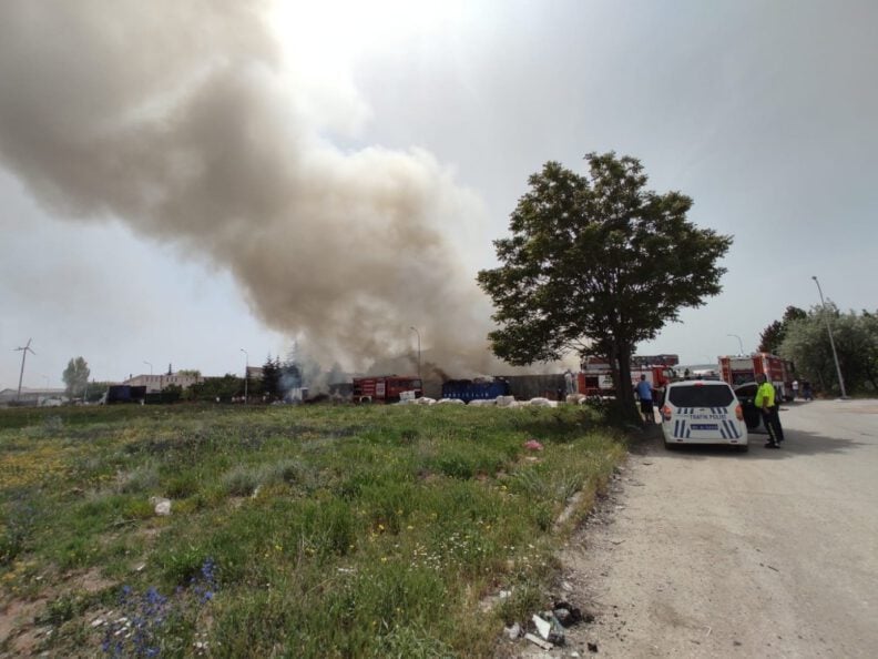 Edinilen bilgilere göre, EMKO sanayi sitesinde bulunan bir geri dönüşüm fabrikasının deposunda presleme yapıldığı esnada yangın çıktı. Kısa sürede deponun tamamına yayılan yangın, giderek büyüdü. Olay yerine gelen çok sayıda itfaiye ekibi yangına müdahale ederken, çevrede gerekli önlemler ekipler tarafından alındı. Fabrika ve depo çevresinde duvar olarak kullanılan demir saclar ise yangına daha iyi müdahale edebilmek için söküldü. Deponun dört bir yanından alevler kontrol altına almaya çalışılırken, itfaiye ekipleri yangının daha da büyümesini önledi.