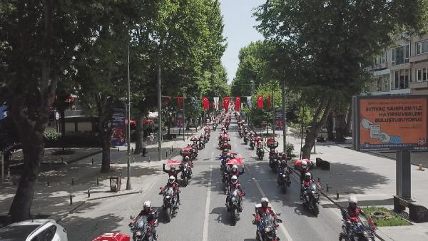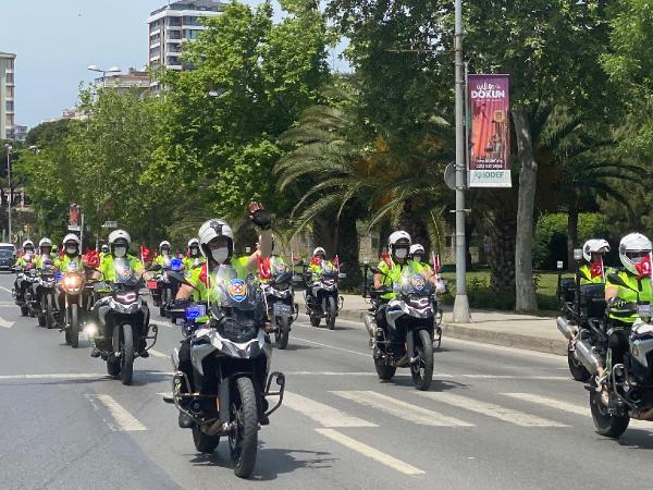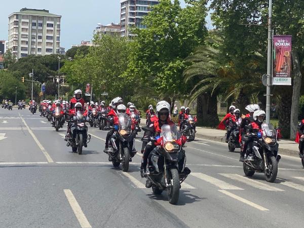 Konvoya Caddebostan Sahili’nden geçerken polis helikopteri de havadan eşlik etti. Motosikletler, Bağdat Caddesi’nde ilerlerken ellerindeki Türk Bayraklarını havaya kaldırdı. Motosikletli şehir turu havadan da görüntülendi.