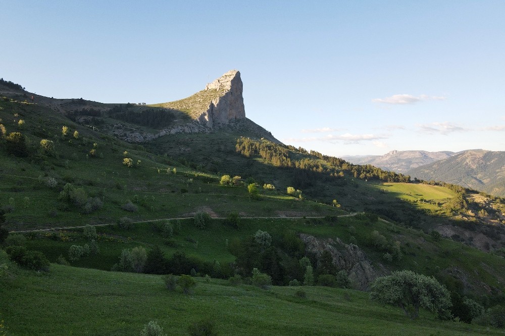 Gümüşhane’de hüzünlü hikayesi ve heybeti ile ‘Ecel Taşı’ herkesi kendisine hayran bırakırken, eşsiz manzarası ve heybetiyle de insanları büyülüyor.