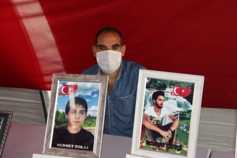 Çocuklarının terör örgütü PKK mensupları tarafından dağa kaçırıldığı iddiasıyla HDP Diyarbakır İl Başkanlığı önünde oturma eylemi başlatan ailelerin evlat nöbeti 259’uncu gününe girdi. 9 yıl önce Diyarbakır’ın Bağlar ilçesinde 14 yaşındaki oğlunun kaybolduğunu belirten baba Ömer Tokay, çocuğunu piknik bahanesiyle Şırnak’a götürüldüğün, torpilli olan ailelerin çocuklarının geri geldiğini, kendi çocuğunun ise dönmediğini söyledi. Tokay, “Oğlum gel arkadaşlarının yanına dön, burada bayramımız yok, senin için kutlamıyoruz. Biz senin için buradayız, kardeşlerin seni çok özlemişler. 9 aydır eylemdeyim, evde huzur kalmadı, biri eve giriyor diğeri çıkıyor evde huzur yok kimse kimseyi görmek istemiyor, dön kardeş ve ağabeylerinin yanına. Annen seni çok özlemiş ona yardım ederdin, dön tekrar annene yardım et benim yanıma gel, peşmerge veya askerlere teslim ol. 13 arkadaşın geldi bir gün bile ceza yemedi, ailesinin yanındalar. Onlar gül gibi bayram yapacaklar biz ise kutlamayacağız” dedi.