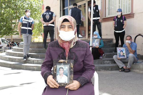 Selim KAYA- Mehmet Mucahit CEYLAN/ DİYARBAKIR, (DHA)- DİYARBAKIR’da, terör örgütü PKK tarafından kaçırılan çocuklarının bulunmasını isteyen 134 aile, HDP il binası önündeki oturma eylemini, koronavirüs salgını nedeniyle sosyal mesafe kuralına uyarak, 272’nci günde de sürdürdü. Oğlu Yavuz (28) için oturma eylemini sürdüren Sevgi Çahmar, evladına teslim ol çağrısında bulunurken, “Oğlumu almadan bu eyleme son vermeyeceğim” dedi.