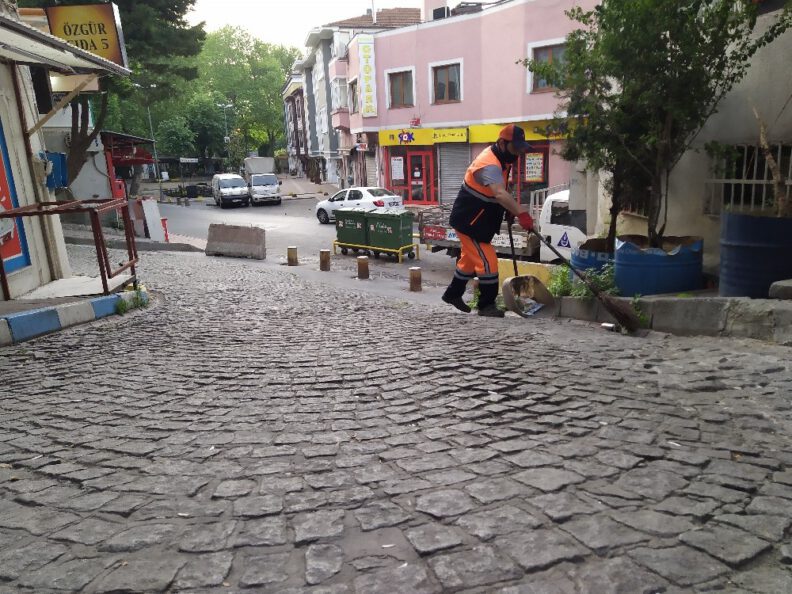 İstanbul’da, sokağa çıkma kısıtlamasının olduğu bugünlerde sokakta kimse yokken, temizlik işçileri görevleri başında çalışmaya devam ediyor.