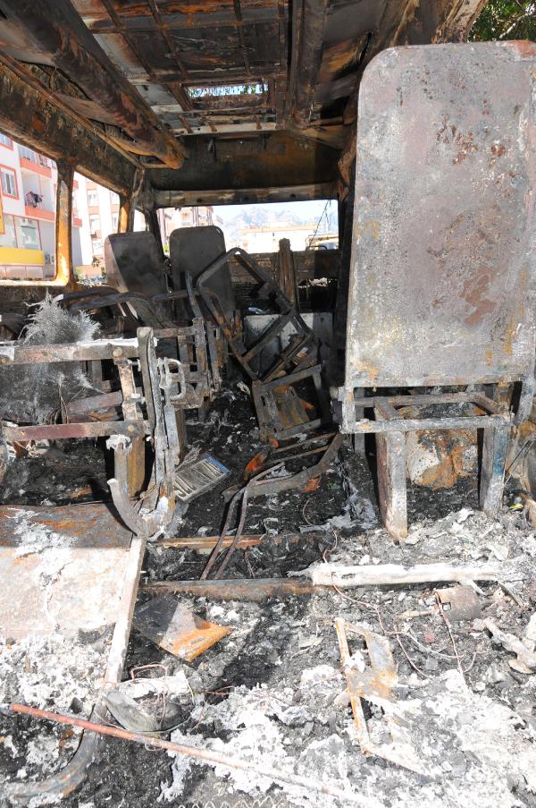 Kepez ilçesine bağlı Ünsal Mahallesi 5116 Sokak üzerindeki iş yerinin önünde park halindeki minibüs, dün saat 20.30 sıralarında alev aldı. Emlakçı Behlül Uysal’a ait 07 AGT 776 plakalı minibüsün yandığını görenler, itfaiyeye haber verdi. İtfaiye ekipleri gelene kadar çevredekiler, su dolu kovalarla yangını söndürmeye çalıştı. Antalya Büyükşehir Belediyesi’ne bağlı itfaiye ekiplerinin gelmesiyle yangın söndürüldü. Minibüs kullanılamaz hale gelirken, Behlül Uysal, hırsızlığa önlem amacıyla daha önce aküyü söktüğünü belirtti. Uysal, “Görgü tanıklarının ifadesine göre 2 kişi, arka kapıdan minibüsü ateşe vermiş. Sağ olsun vatandaşlar, kovayla müdahale etmişler ama yetersiz kalmış. Kimseyle husumetim yok. Neden böyle bir şey yaptılar, anlamadım” dedi.