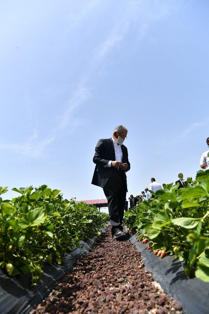 Büyükşehir Belediye Başkanı Dr. Memduh Büyükkılıç, Doğal Ürünler Bahçesi’nde yetiştirilen ürünlerle ilgili bilgi aldı. Büyükşehir Belediyesi’ne ait şehrin farklı bölgelerindeki 1784 hobi bahçesi ile ilgili de önemli açıklamalar yapan Başkan Büyükkılıç, vatandaşların bu konuda yoğun talepleri olduğunu söyledi.