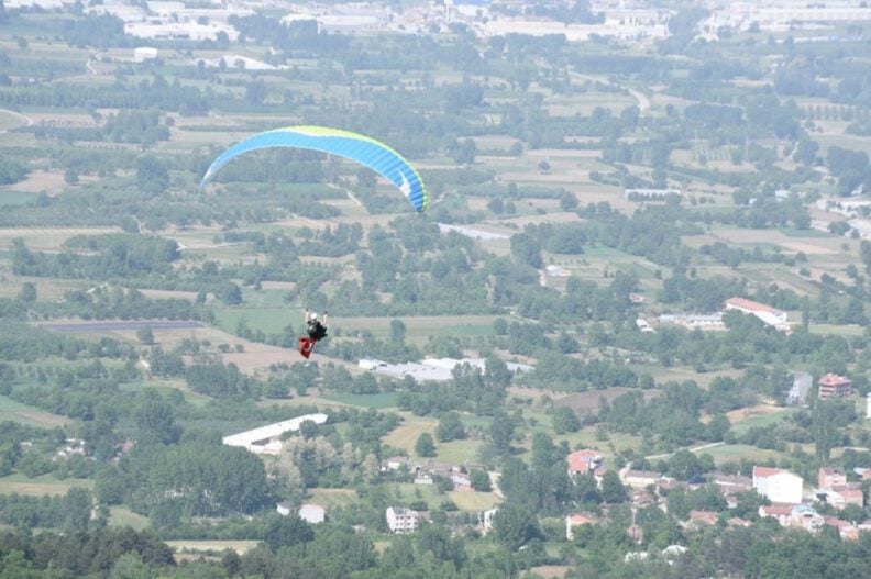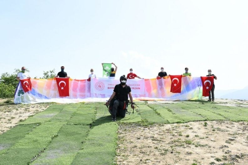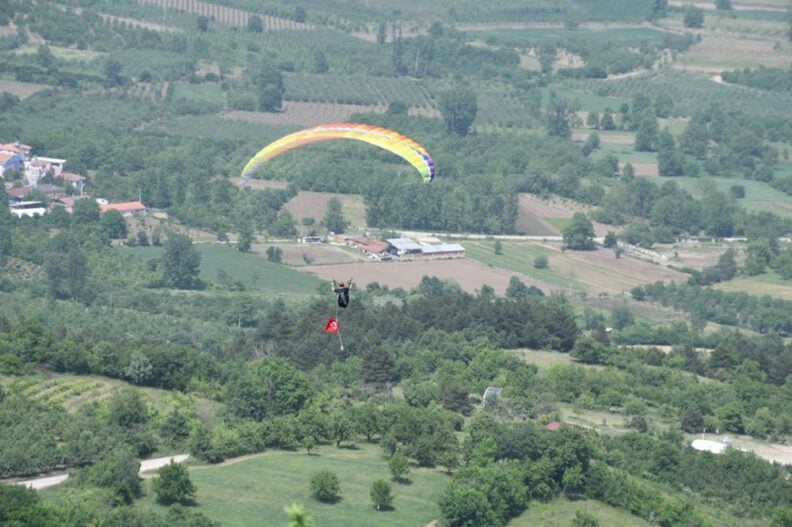 İnegöl Doğa Sporları ve Turizm Merkezi Cerrah tepesinde 19 Mayıs Atatürk’ü Anma Gençlik ve Spor Bayramı’na özel yamaç paraşütü uçuş etkinliği düzenledi.