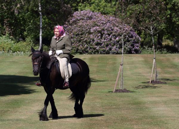 Safkan yarış atı yetiştiricisi olan ve atlara tutkuyla bağlı olna 94 yaşındaki Kraliçe Elizabeth, Windsor Kalesi’nin koronavirüs nedeniyle karantinaya alınmasından sonra ilk kez, renkli bir başörtü, tüvit ceket, binicilik pantolonu, beyaz eldiven ve bot giyip hafta sonu boyunca 14 yaşındaki Balmoral Fern adındaki Fell cinsi midilliye binerken görüntülendi. 98 yaşındaki Edinburgh Dükü olan kocası Philip Mountbatten ile karantinayı beraber geçiren kraliçenin son resmi, 19 Mart’ta Buckingham Sarayı’ndan Berkshire’daki evine götürülürken çekilmişti.