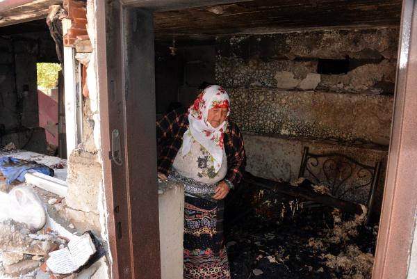 “Aylık 500 liraya 3 ay önce evi Hüseyin D.’ye kiraya verdim. Kendisi bugüne kadar sadece 250 lira ödeme yaptı. Komşular telefon edip ‘Evin patladı’ dedi. Haberi alıp geldiğimde polisler, itfaiye vardı. Kendi kendini zehirleyip öldürmek için doğal gaz borusunu kesmiş, intihar etmek istemiş. Daha önce de internette yazmış ‘Kendimi öldüreceğim’ diye. Bana da telefon etti, ‘Kendimi öldüreceğim teyze. Ben karımı seviyorum’ dedi. Ben de ‘Öyle şey olmaz’ dedim. Doğal gazımı kesip evimi yaktı. Eşi gittiyse suçlu ben miyim? Devlet bana yardım etsin. Emekli aylığım vardı, onunla geçiniyordum ama oğluma kredi çektim ve maaşımla onu ödüyorum. Oğlum yatalak ve bakmak için de onun evine yerleştim. O nedenle evimi kiraya verdim. Hüseyin D.’den ölene kadar şikayetçiyim.”