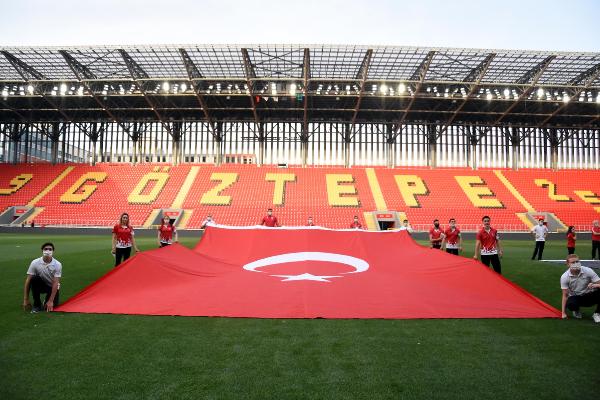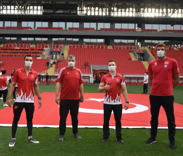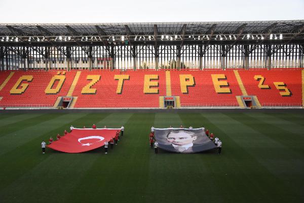 Onur ATIŞ – Ergin KARATAŞ – Tekin GÜRBULAK / İZMİR (DHA) – Koronavirüs salgınında Türkiye’nin tüm kentlerinde olduğu gibi İzmir’de de 19 Mayıs Atatürk’ü Anma, Gençlik ve Spor Bayramı statlarda İstiklal Marşı okunarak kutlandı. Süper Lig ekiplerinden Göztepe’nin bu sezon açılışını yaptığı Gürsel Aksel Stadı’ndaki organizasyonua İzmir’in olimpik sporcuları katıldı. Stada 7 branştan, 26 sporcu gelirken, saatler 19.19’u gösterdiğinde İstiklal Marşı hep bir ağızdan coşkuyla okundu. Sporcular sahanın ortasında dev Türk bayrağı ve Türkiye Cumhuriyeti’nin kurucusu Mustafa Kemal Atatürk posterini açtı. İstiklal Marşı’nın okunmasının ardından stadyumda ışık gösterileri yapıldı, İzmir Marşı çalındı. İzmir’de Gürsel Aksel Stadı’nın yanı sıra Atatürk Stadı, Bornova Stadı ve Halkapınar Spor Salonu’nda da İstiklal Marşı okundu. Sporcular etkinlikte sosyal mesafe kuralına uyarak maskelerini taktı. Vatandaşlar da İstiklal Marşı’na evlerinin balkonlarından eşlik etti.