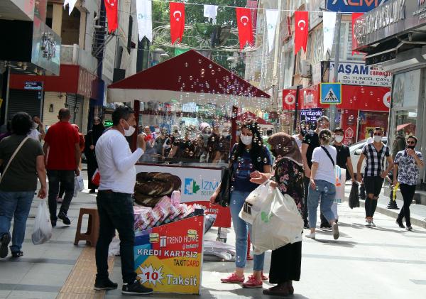 Ergün AYAZ- Alişan KOYUNCU/İZMİT(Kocaeli), (DHA)- İZMİT’te, 4 günlük sokağa çıkma yasağı öncesi alışveriş yapmak isteyenler kent merkezinde yoğunluğa neden oldu.