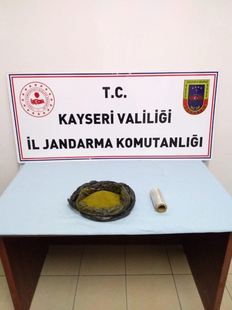 Edinilen bilgiye göre durumundan şüphelenilen bir araç jandarma ekiplerince takibe alındı. Araç, Yeşilhisar – Niğde karayolunda yakalanarak durduruldu. Araç ve şahısların üzerinde yapılan aramalarda 1 kilo 500 gram toz esrar ele geçirildi. Ele geçirilen uyuşturucu maddelere el konulurken araçta bulunan M.Ç. ve beraberindeki 3 kişi gözaltına alındı.