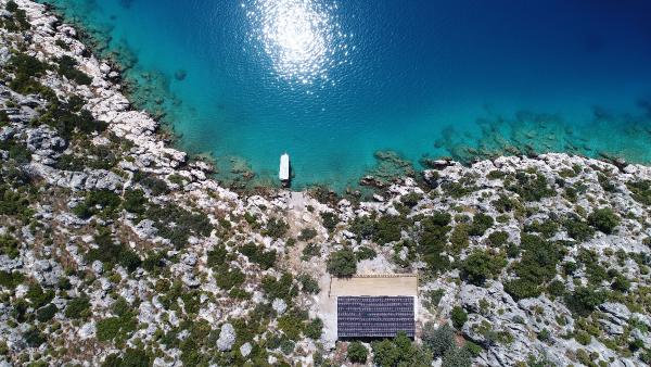 Ahmet İSTEK/DEMRE (Antalya), (DHA)- ANTALYA’nın Demre ilçesinde, koruma altındaki birinci derece doğal sit alanında, koronavirüs salgını sürecinde 48 saatte yapıldığı belirlenen kaçak villanın, yapım fotoğrafları ortaya çıktı. Koronavirüs salgını yasaklarının olduğu dönemde yapılan villanın malzemelerinin, kayıklarla adaya getirilip raylı vinçlerle taşındığı belirlendi.