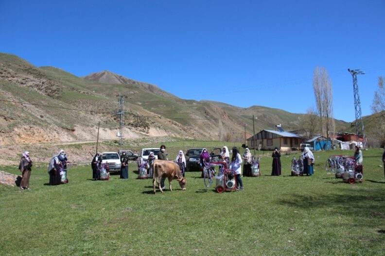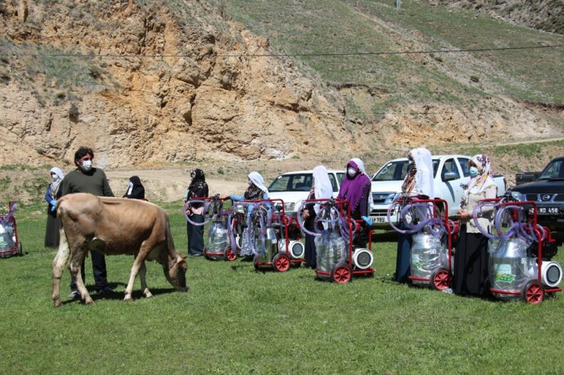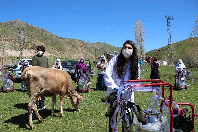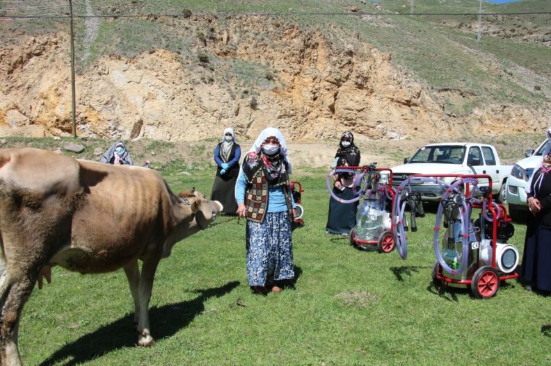 Erzurum’un Oltu ilçesi Nüğürcük Mahallesi’nde 12 kadın çiftçiye yapılan törenle süt sağım makinesi verildi. Süt sağma makinelerine kavuşan çiftçiler, “Artık makine sayesinde ahırda çok az zaman harcayacağız” dediler.