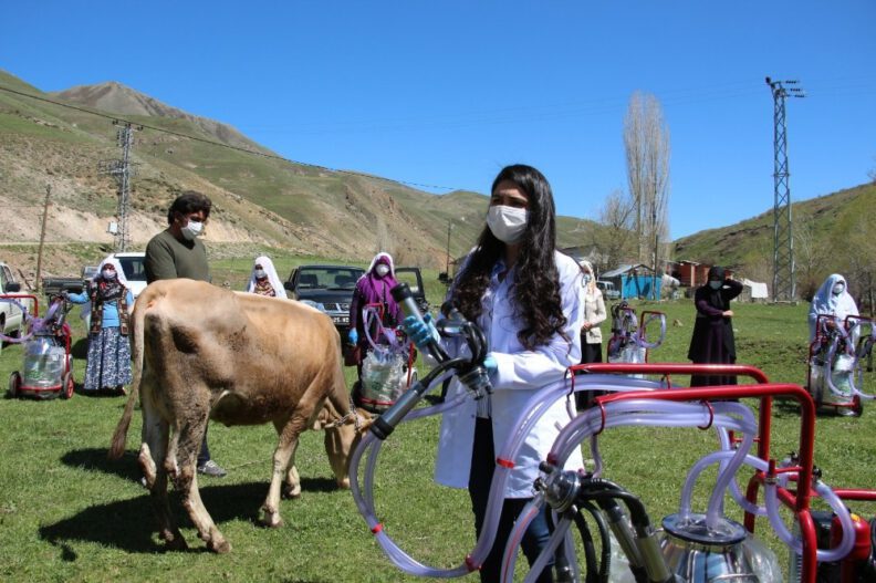 Oltu Tarım ve Orman İlçe Müdürlüğünde görevli veteriner hekim Yağmur Çelik, süt sağım makinesinin teknik özelliklerini uygulamalı olarak çiftçilere anlattı. Tarım ve Orman İlçe Müdürü Temel Aslan, Süt Sağımı ve Hijyen Kursu’nu başarıyla tamamlayan 12 çiftçiye Cumhurbaşkanı Erdoğan ile Tarım ve Orman Bakanı Pakdemirli’nin ve Erzurum Tarım ve Orman Müdürü Osman Akar’ın hediyesi olarak süt sağım makinesinden dağıttıklarını belirterek, bu imkanları sağlayan devlet yöneticilerine teşekkür etti.