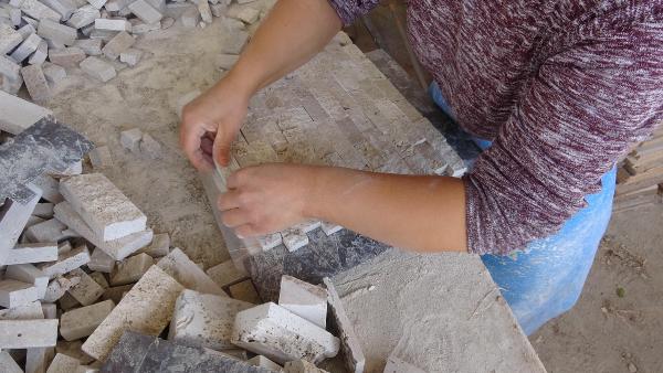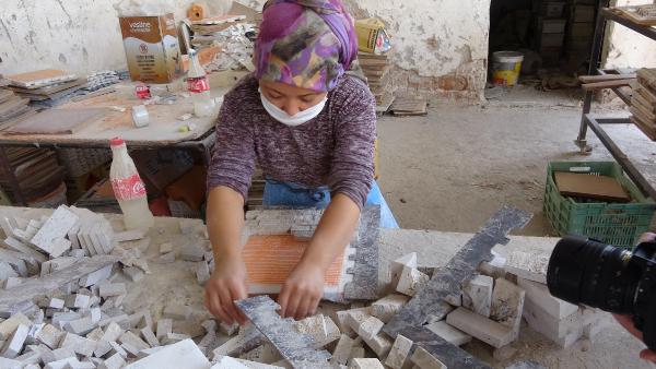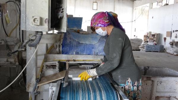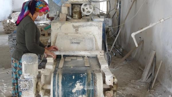 Mermer atıklarından dekorasyon malzemesi üretimi işinde 4 yıldır çalışan Sultan Tezel, “Bu benim ilk iş yerim. İşi burada öğrendim. İlk zamanlar çok zor geldi ama sonradan alıştım” dedi.