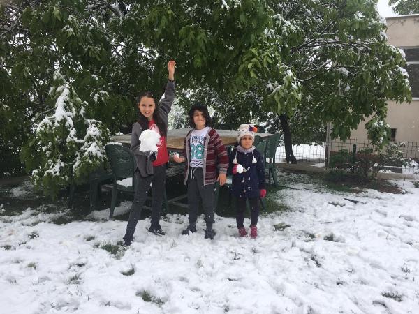 Ömer KOÇ/KAHRAMANMARAŞ, (DHA)- KAHRAMANMARAŞ’ın Elbistan ve Göksun ilçelerinin yüksek kesimlerindeki mahallelerine kar yağdı. Mayıs ayında yağan kara sevinen çocuklar evlerinin bahçesinde kartopu oynadı.