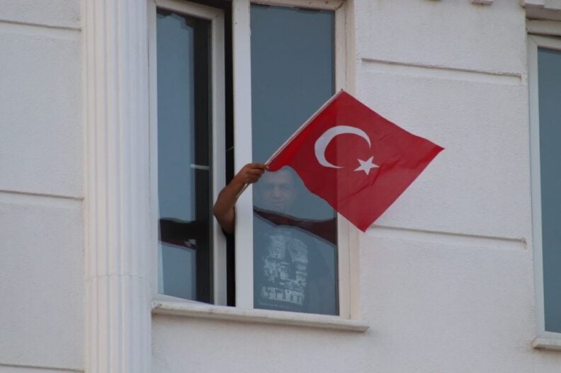 Kuzey Kıbrıs Türk Cumhuriyeti’nden (KKTC) Karaman’a getirilerek gözlem altına alınan 288 Türk vatandaşı, kaldıkları yurdun pencerelerinden saat 19.19’da bayraklar açarak İstiklal Marşı’nı okudu.