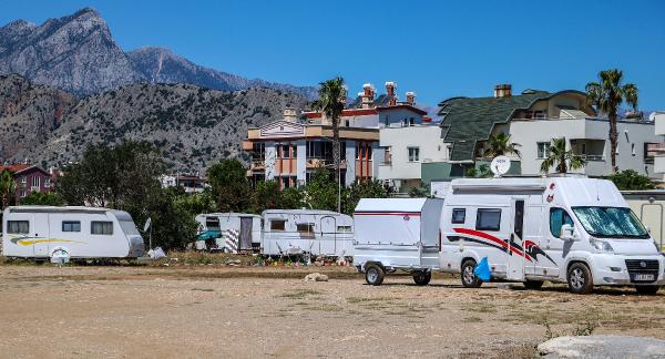 Koronavirüs tedbirleri kapsamında Ramazan Bayramını da kapsayacak şekilde 4 gün sokağa çıkma kısıtlaması getirildi. Kısıtlama kapsamında milyonlarca kişi bayramı evlerinde ve sevdiklerinden uzakta geçiriyor. Antalya’nın dünyaca ünlü Konyaaltı Sahili karşısında bulunan boş alanda park halindeki yaklaşık 50 karavanda yaşayanlar da bayramı sevdiklerinden uzakta ve izole şekilde geçiriyor.