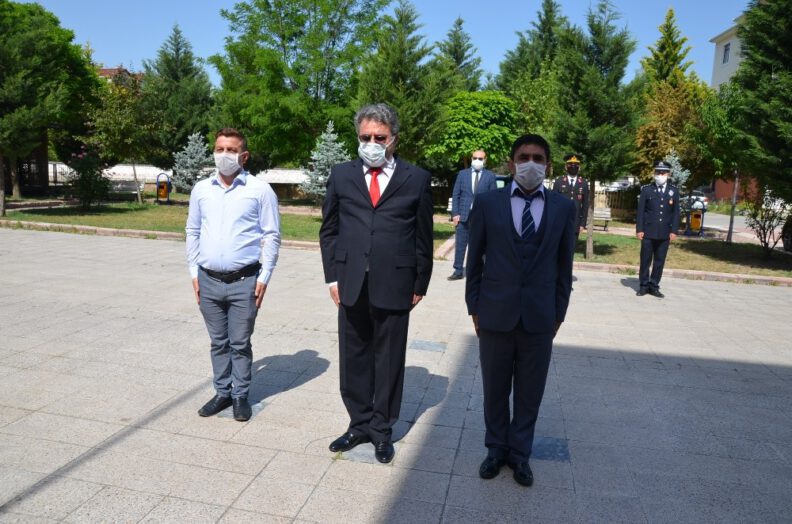 Kaymakamlıkta yapılan çelenk sunma törenine, Kaymakam Hasan Taş, Belediye Başkanı Zeki Şen, İlçe Emniyet Amiri Başkomiser Mustafa Topal, İlçe Jandarma Komutanı J.Teğ. Yunus Emre Yılmaz, Gençlik Hizmetleri ve Spor İlçe Müdürü Burhan İncekara katıldı.