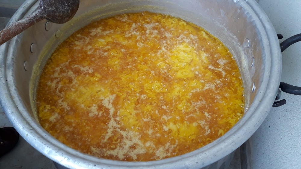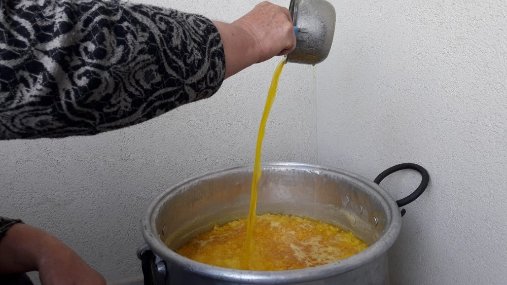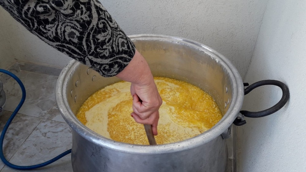 Annesi Fatma Erkoç’a yardım ettiğini ifade eden Serkan Erkoç, “Her yıl Mayıs ayında aldığımız tereyağını sarıyağa çevirmek için bir takım işlemlerden geçiriyoruz. Burada kaynatıyoruz, tortusunu alıp tereyağını, sarı rengini alan sarıyağ haline getiriyoruz. Bunu da hangel yemeklerinde, haşıl yemeklerinde ve yöresel yemeklerde kullanıyoruz. Kışlık yağımızı böylece hazırlamış oluyoruz” dedi.