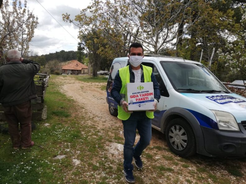 İlçe merkezi ve 54 mahallesinde Korona virüs salgını sebebiyle vatandaşlara gıda paketi desteğinde bulunan Kaş Belediyesi, Ramazan ayında da tespit edilen ihtiyaç sahibi ailelere yardım kolilerini ulaştırıyor.