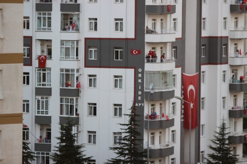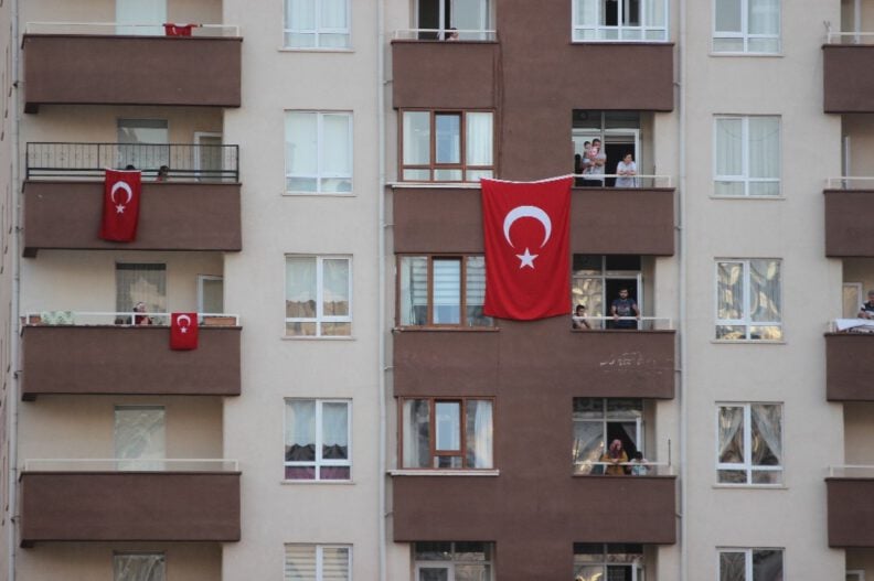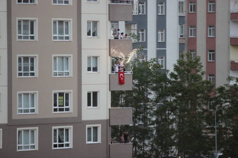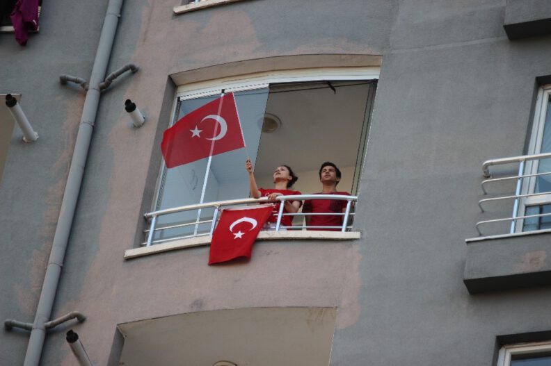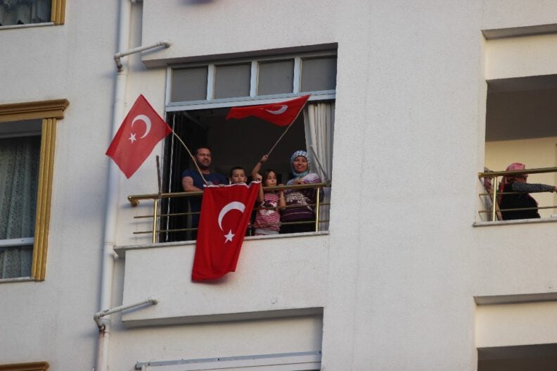 Cumhurbaşkanı Recep Tayyip Erdoğan’ın çağrısıyla saat 19.19’da balkonlarına çıkan vatandaşlar, hep bir ağızdan İstiklal Marşı’nı okudu. Kayserililer, evlerinin balkon ve pencerelerinden ellerindeki Türk bayrakları ve meşalelerle marşlar söyledi.