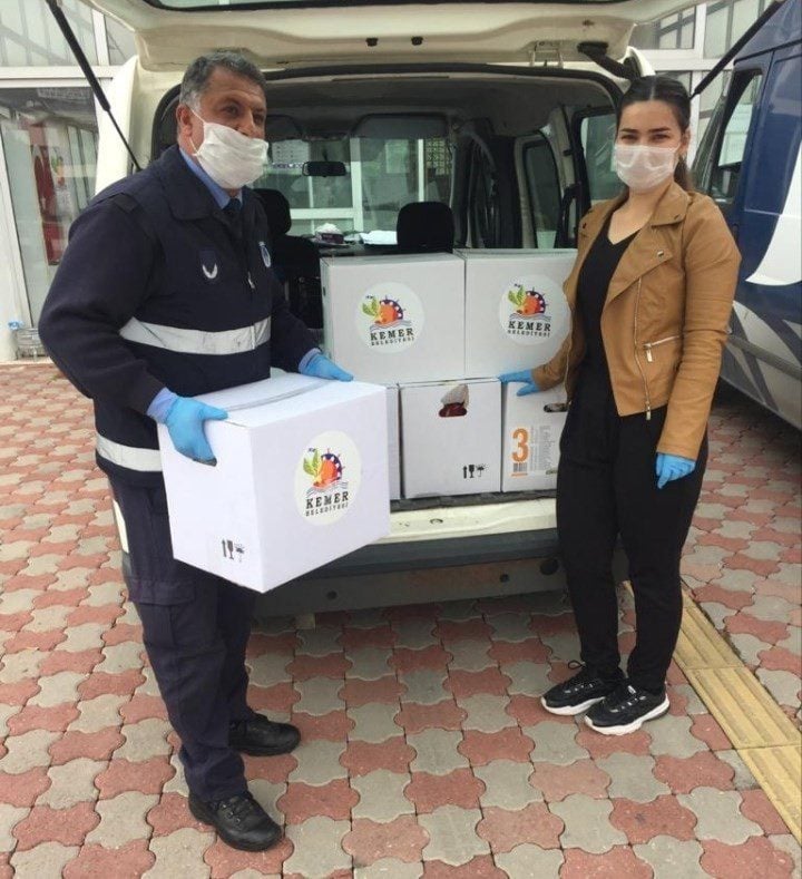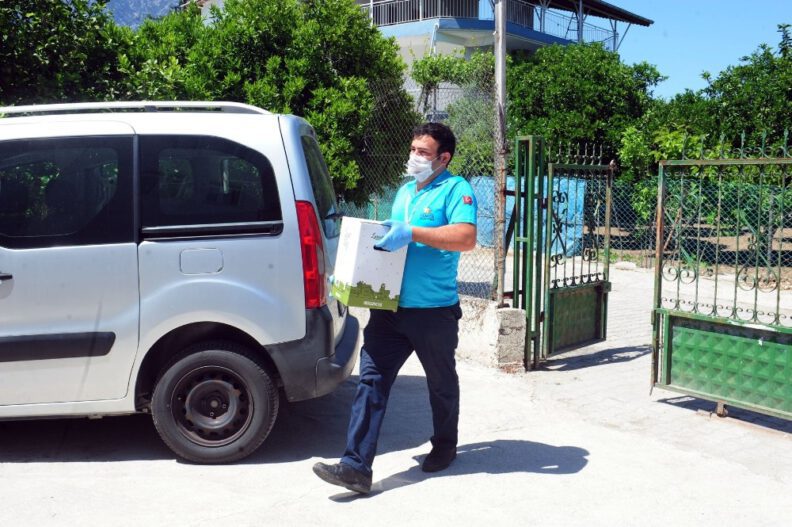 Kemer Belediye ekipleri, Belediye Başkanı Necati Topaloğlu’nun talimatıyla korona virüs salgını süresince ihtiyaç sahiplerine ve ilçede yaşayan engelli vatandaşlara 6 bin adet gıda paketi dağıttı.