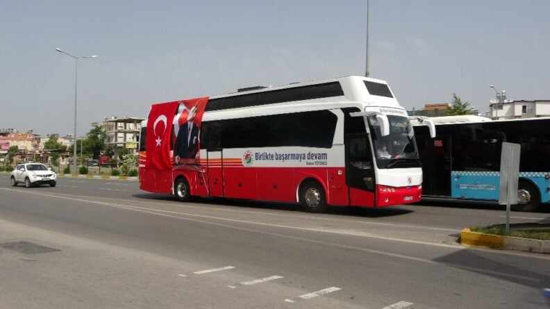 Tütüncü, konuşmasının ardından otobüse binerek, vatandaşların bayramını kutladı.