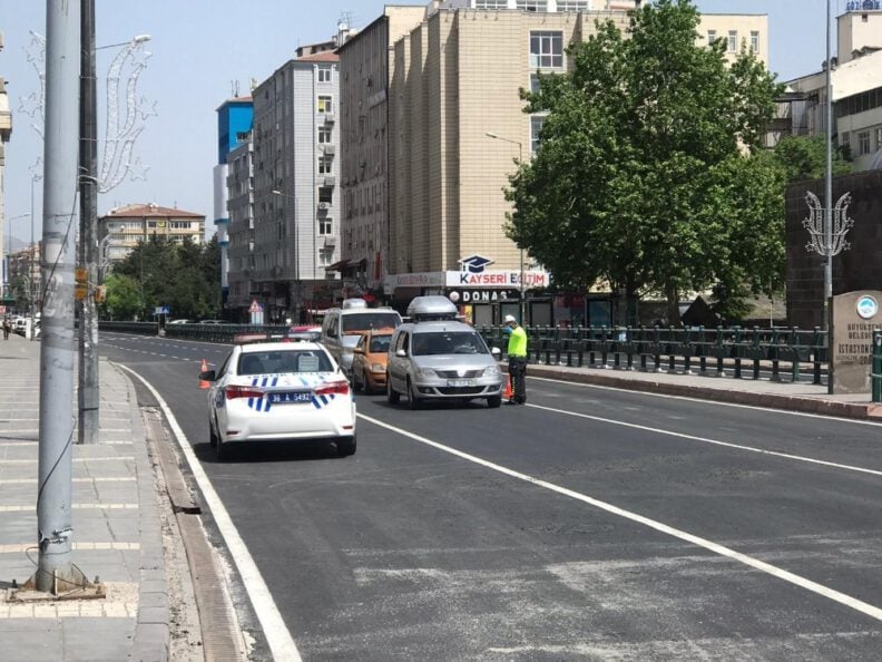 İçişleri Bakanlığı tarafından yayımlanan genelge ile uygulanan 4 günlük sokağa çıkma kısıtlamasında Kayseri’de cadde ve meydanlar boş kaldı. Kısıtlamanın 3. gününde vatandaşlar, ihtiyaçlarını giderebilmek için evlerinin çevresinde ve yürüme mesafesinde olan marketlere giderek, ihtiyaçlarını temin etti. Marketlere giden vatandaşların, sosyal mesafe ve maske kurallarına uymaları objektiflere yansıdı.