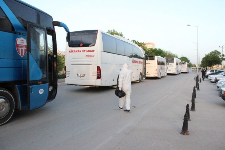 KKTC’den feribotla Mersin’in Silifke ilçesindeki Seka Taşucu Limanı’na gelen 288 kişi, daha sonra polis eşliğinde otobüslerle sabaha karşı kalacakları Karaman’daki Gençlik ve Spor Bakanlığına bağlı Hatuniye Kız Öğrenci Yurdu’na getirildi. Özel kıyafetli görevlilerin öğrenci yurdu bahçesinde hazır bekletilmesi ile polisin güvenlik tedbirleri dikkat çekti. Yurda yerleştirilen 288 kişi, yeni tip korona virüs tedbirleri kapsamında 14 gün karantinada kalacak.