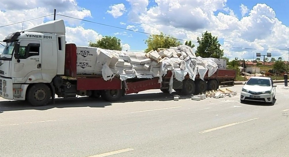 Kontrolden Çıkan Tırdaki̇ Tuğlalar Yola Saçıldı