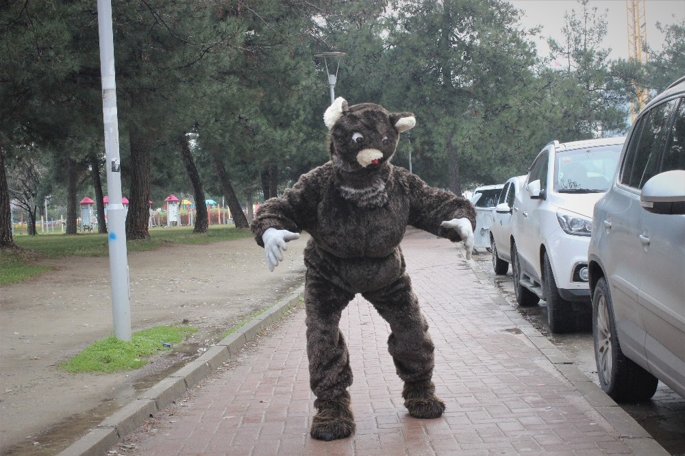 Bursa’da karınca, geyik,ayı, kartal kostümleri giyerek farkındalık oluşturan ve halkı gündeme ilişkin uyaran ünlü tiyatrocu Bahtiyar Keskin bu sefer salgına dikkat çekmek için virüs kılığına girdi. Bahtiyar Keskin, virüse benzettiği ilginç kostümüyle maskesiz gezen ve sosyal mesafe kurallarına uymayan vatandaşları uyardı. Ancak ilginç kostümüyle köpeği kızdıran tiyatrocu, hayvanın peşine düşmesiyle nereye kaçacağını şaşırdı.