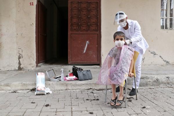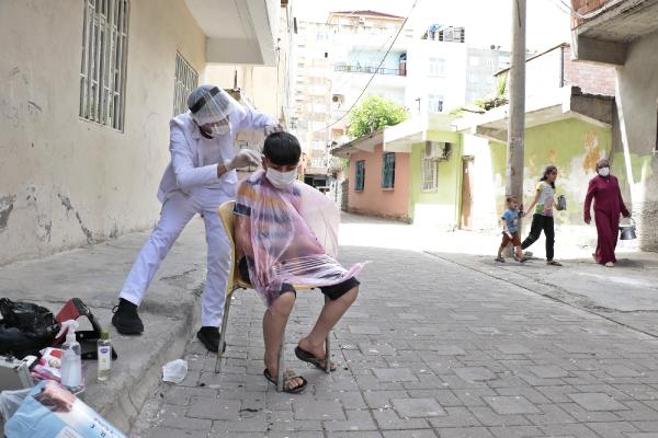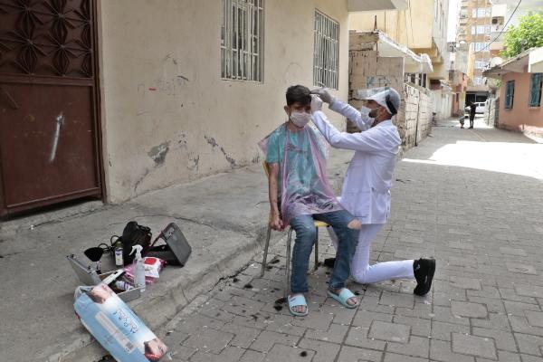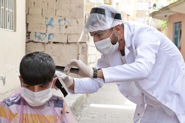 Diyarbakır’da hasta, yaşlı ve bedensel engellilerin evlerine giderek saç tıraşlarını ücretsiz yapan berber Resul Yılmaz, şimdi ise koronavirüs salgını nedeniyle sokağa çıkma yasağı getirilen 65 yaş üstü ve kronik hastalar ile 20 yaş altındakilerin kapı kapı dolaşarak bayram tıraşlarını yapıyor.