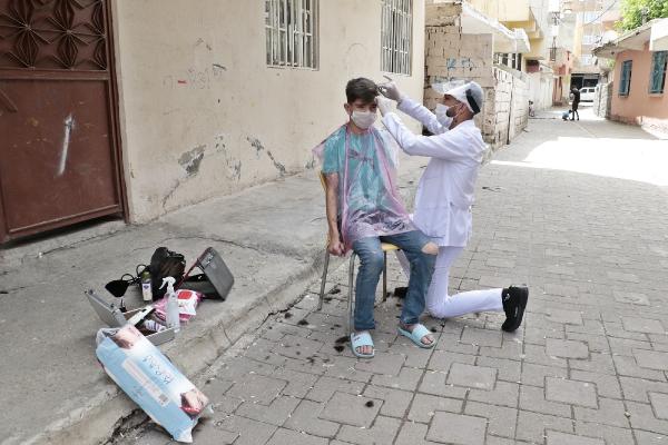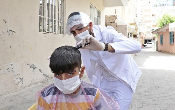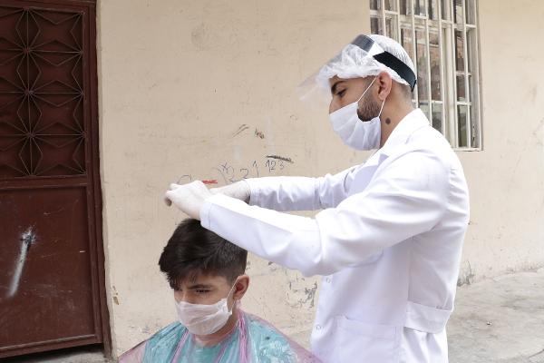 Mehmet Mucahit CEYLAN- Selim KAYA/DİYARBAKIR, (DHA)- DİYARBAKIR’da berber Resul Yılmaz (21), koronavirüs nedeniyle sokağa çıkma yasağı getirilen 65 yaş üstü ve kronik hasta ile çocukları evlerinde ücretsiz tıraş ediyor.