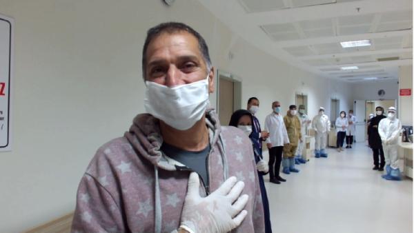 Yasin ALDEMİR/KARABÜK, (DHA)- KARABÜK’te, koronavirüse yakalanan ve tedavisinin tamamlanmasının ardından sağlığına kavuşan Habip Çetinkaya ve eşi Hatice Çetinkaya, sağlık çalışanlarının alkışlarıyla taburcu edildi.