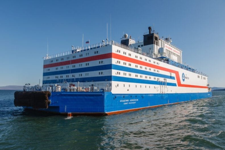 Rosatom’un yüzer NGS’si Akademik Lomonosov, düşük kapasiteli taşınabilir enerji üniteleri arasında öncü bir proje niteliğini taşıyor. Yüzer NGS’nin deneme işletimi sürüyor. Santral, Rusya’nın Çutotka bölgesinde bulunan Pevek şehri için elektrik üretiyor. Uzunluğu 114, genişliği 30 metre olan ve her biri 35 megavat kapasiteli iki reaktörden oluşan Akademik Lomonosov, yaklaşık 100 bin kişilik bir yerleşimin enerji ihtiyacını karşılayabilecek kapasiteye sahip bulunuyor. Yaklaşık 40 yıl boyunca çalışmak üzere tasarlanan yüzer nükleer güç santrali, 2019’un sonlarında ilk kez şebekeye elektrik verdi. Akademik Lomonosov’u benzersiz kılan şeylerden biri de baştan sona tersanelerde, nükleer buzkıran gemileriyle aynı teknolojinin kullanılarak inşa edilmiş olması. Çernobil ve Fukushima sonrası güvenlik gerekliliklerine bağlı kalarak en yüksek güvenlik standartlarını karşılayan yüzer NGS ile ilgili güvenlik iddialarına ise uzmanlar şu yorumu yapıyor: “Gelecek yıllarda dev bir gök taşının dünyaya çarpma ihtimali çok düşüktür ama bu ihtimal Akademik Lomonosov’da ciddi bir kaza olma ihtimalinden neredeyse 2 kat daha fazla.”