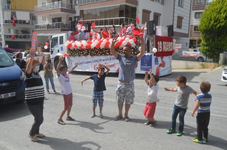 Türkiye’de,19 Mayıs Atatürk’ü Anma, Gençlik ve Spor Bayramı, bu yıl Covid-19 salgını nedeniyle evlerde ve balkonlarda kutlanırken, Kuşadası Belediyesi kent sakinlerinin bayram coşkusunu doyasıya yaşayabilmesi için bando ve DJ eşliğinde bir program düzenledi.