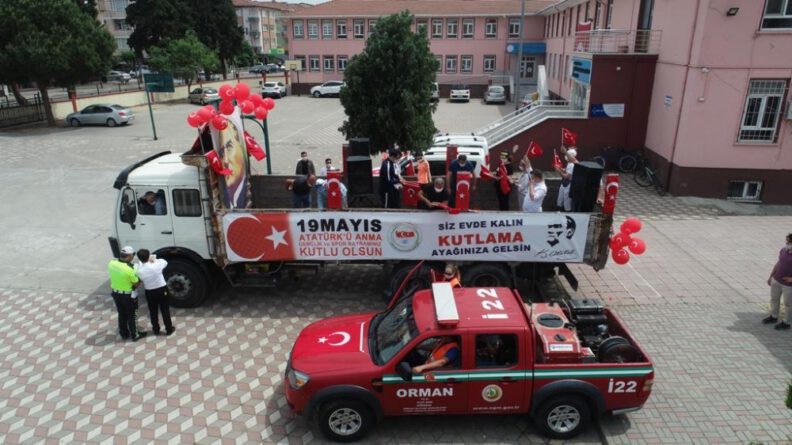 19 Mayıs Atatürk’ü Anma, Gençlik ve Spor Bayramı kutlaması Gönen Kaymakamı Arslan Yurt’un talimatıyla vatandaşların ayağına götürüldü. Bu kapsamda, Gönen Kaymakamlığı Vefa Sosyal Destek Grubu Ekipleri tarafından verilen hizmetlere bir yenisi daha eklendi. Ekip hizmet araçlarından oluşan sınırlı sayıda araç ile birlikte bayraklarla süslenen kamyonetten oluşan kortej, marşlar ve kahramanlık türküleri eşliğinde ana caddelerini dolaşarak vatandaşlara 19 Mayıs coşkusunu evlerinde yaşattı.