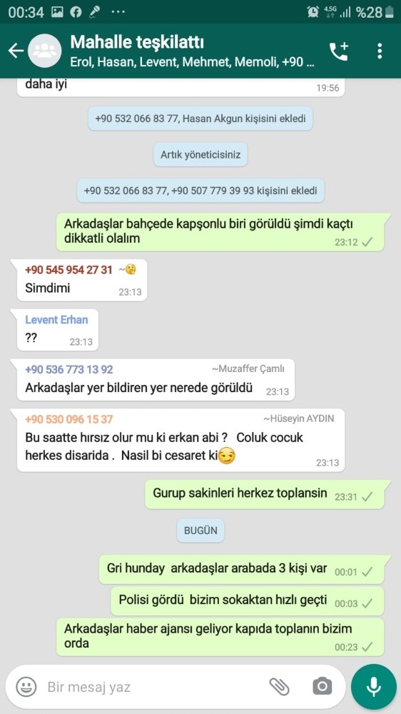 Mahalleli olarak 3 gecedir nöbet tuttuklarını belirtten diğer bir mahalleli,” burada 3 gündür nöbetteyiz. Mahallemizin gençleri olsun hepimiz toplanıyoruz. Bekliyoruz bura da bakalım bir daha geleceğim demiş. Akşamda buradan kaçarken görmüşler. Toplamda 2 kişiler bu akşam 1 kişi kaçmış” diye konuştu