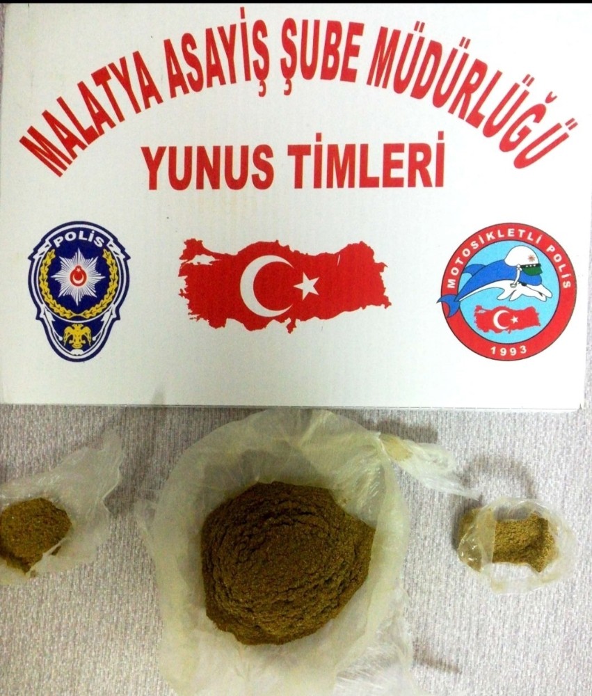 Malatya emniyet Müdürlüğü Asayiş Şube Müdürlüğüne bağlı ekiplerce gerçekleştirilen çalışmalarda, 75.38 gram narkotik madde, 26 adet uyuşturucu ve uyarıcı nitelikte hap, 2 adet ruhsatsız tabanca 15 adet mermi, 2 adet kurusıkı tabanca, 5 adet ruhsatsız tüfek ve 1 adet havalı tüfek ele geçirildi.