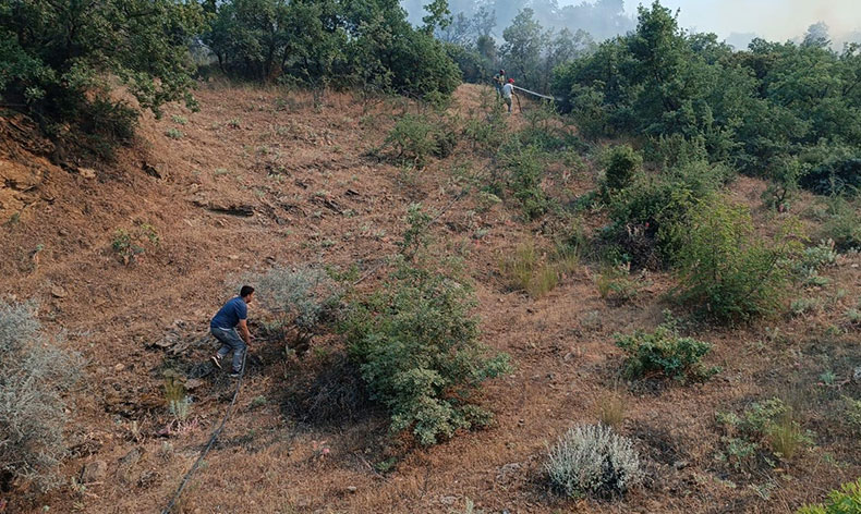 Dün Manisa’nın Alaşehir ilçesine bağlı İsmailbey Mahallesi’nde saat 12.00 sıralarında zirai alanda başlayan yangın, rüzgarın da etkisiyle büyüdü. Mahallenin üst bölümünde devam eden yangın, meşelik orman alanına sıçradı. Uşak’ın Eşme ilçesine bağlı Narıcalı, Kula ilçesine bağlı Battal Mustafa, Alaşehir ilçesine bağlı Serinköy mahallelerinin olduğu bölgelerde etkili olan yangına, gün içerisinde havadan ve karadan 71 söndürme ekibi, 7 hava aracı, 8 iş makinesi, 1 elektrik teknik ekip, 5 sağlık ekibi, 20 güvenlik ekibi ile müdahale edildi. Ekiplerin uzun uğraşları sonucu 23.50’de kontrol altına alınan yangın, soğutma çalışmalarının da başlamasıyla birlikte 04.00 sıralarında tamamen söndürüldü.