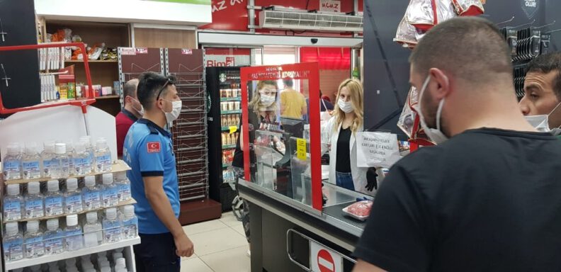 Kocaeli Büyükşehir Belediyesi zabıta ekipleri, dört günlük sokağa çıkma yasağında iki gün açık olan market ve eczanelere, sosyal mesafe ve maske fiyat denetimleri gerçekleştirdi.