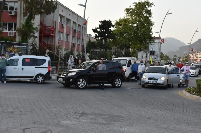 19 Mayıs Atatürk’ü Anma, Gençlik ve Spor Bayramı’nın 101. yılında Marmaris tek yürek oldu. Marmaris Körfezi açıklarında iki savaş gemisi mürettebatı ile saat 19.19’da siren çalarak İstiklal Marşı okudular. Trafikte seyir halindeki araçlar durdu, vatandaşlar balkonlarından ve caddelerden sirenlerin bitimine kadar saygı duruşunda bulundu bayraklarını salladı.