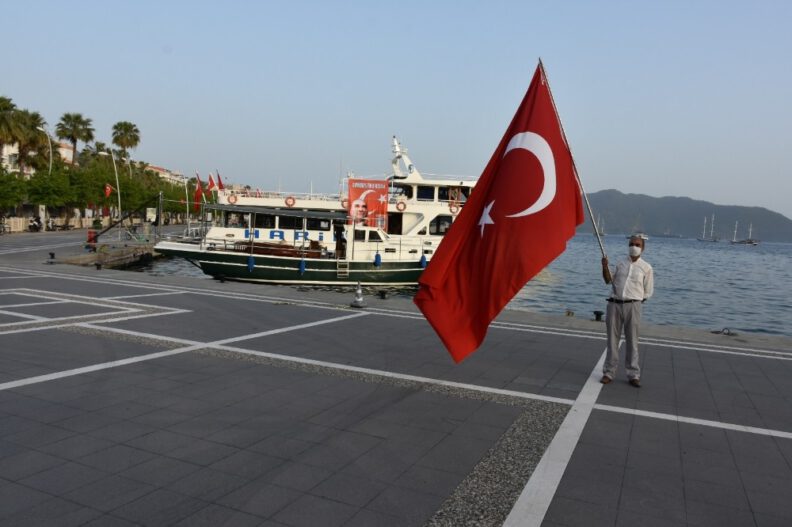 Mustafa Kemal Atatürk’ün 19 Mayıs 1919’da kurtuluş mücadelesi için Samsun’a çıkmasının 101’inci yıl dönümünde tüm Türkiye’de olduğu gibi Marmaris İlçesi’nde vatandaşlar saat 19.19’da balkonlarından İstiklal Marşı’nı okudu. Marmaris Körfezi açıklarında bulunan Deniz Kuvvetlerine bağlı iki savaş gemisi askerleri güvertede bekledi. Saat 19.19’da savaş gemilerinden siren çalınarak saygı duruşunda bulunuldu. Sirenleri duyan hareket halindeki sürücüler araçlarını durdurarak aşağı inerek saygı duruşunda bulundu.