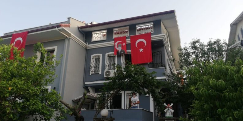 Apartmanlarını Türk Bayrakları ile donatan vatandaşlar, balkon ve pencerelere çıkarak saygı duruşunda bulundu. Türk Bayrakları ile donatılan demir atmış günü birlik gezi tekneleri 1 dakika boyunca siren çaldı. İki dakika süren saygı duruşu ve İstiklal Marşı ardından sürücüler araçlarına binerek yollarına devam etti. Balkon ve pencerelerine çıkan vatandaşlar evlerine, sokakta dolaşanlar ise kaldığı yerden yollarına devam etti.
