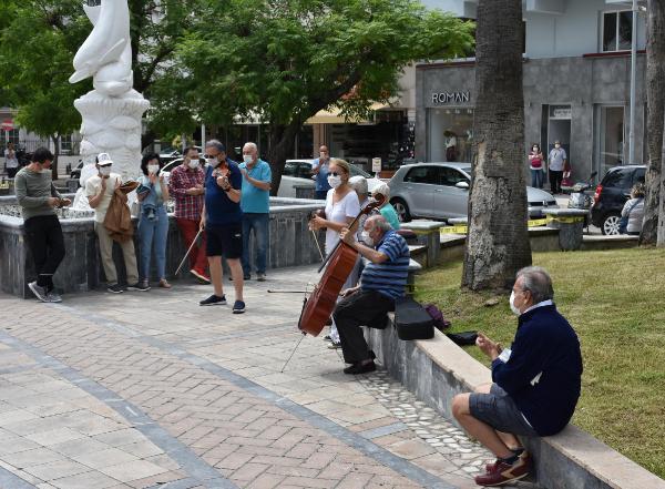 Marmaris ilçesinde sokağa çıkan 65 yaş ve üstündeki vatandaşlar Atatürk Caddesi’nden Siteler Mahallesi’ne kadar uzanan 8 kilometrelik sahil yürüyüş yolunu doldurdu. Kimi açan çiçekler, deniz manzarasıyla öz çekim yaptı kimi de uzun yürüyüş ya da bisiklet yolunda pedal çevirerek spor yapmayı tercih etti. Öte yandan Marmaris Filarmoni Derneği üyeleri de, Abdi İpekçi Parkı’nda 65 yaş ve üzeri vatandaşlar için mini canlı konser verdi. Bir viyolonsel, iki kemancıdan oluşan grup, Mozart, Johann Sebastian Bach’ın eserlerini çaldı. Yedi parçalık mini konserin sonunda Türkiye Milli Takım Marşı olan ‘Yer Gök İnlesin’ hep bir ağızdan alkışlarla söylendi.