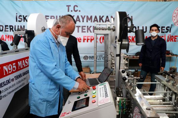 İskenderun Mesleki Teknik Anadolu Lisesi Okul Müdürü Yusuf Yıldırım, salgın sürecinin başlamasından itibaren kendilerine düşen görevi büyük bir heyecan ve titizlikle yerine getirdiklerini söyledi. Yerli ve milli duygular içerisinde maske makinesi üretmek için kolları sıvadıklarını kaydeden Yıldırım, “Makinelerimizi tamamladık ve üretime başladık. Bu süreçte öncelikle bize yol gösten ve destek olan Cumhurbaşkanımıza, Milli Eğitim Bakanlığı’na, Hatay Valimize teşekkür ederiz. 45 gün süre içerisinde makinemizin imalatını tamamladık. Gece gündüz demeden çalıştık. Öğrencimizle, öğretmenimizle üretim sürecinin tamamında bulunduk. Bundan sonra daha da gelişerek ve hızlanarak üretmeye devam edeceğiz. N95 maske bu süreçte çok önemli bir rol oynuyor ve ürettiğimiz maskeler tamamen sağlık ve kalite şartlarına uygundur” diye konuştu.