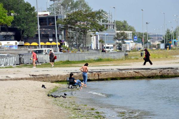 Küçükçekmece Menekşe Sahili’nde sıcak hava nedeniyle vatandaşlar kendini kumsala attı. Bazı vatandaşlar kumsalda otururken, bazıları ise yasak olmasına rağmen denize girdi. Çocuklarını da sahile getiren bazı vatandaşların, maske kullanmadıkları görüldü. Denize giren Metin Kılınç, “Yasak var ama bugün gelelim denize girelim dedik. Kafayı yedik evde dura dura. Biraz da denize girip virüs stresini atalım.” dedi.