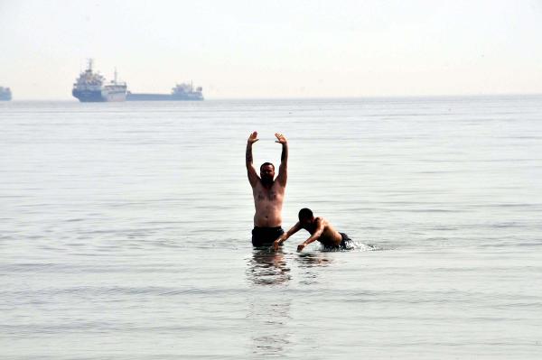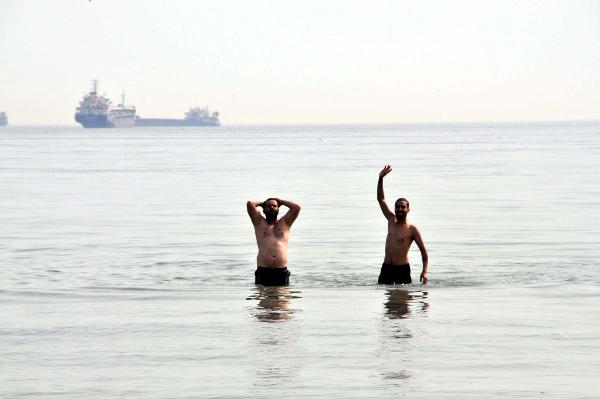 İbrahim YILDIZ/İSTANBUL,(DHA)-KORONAVİRÜS önlemleri kapsamında denize girmek ve sahilde gezmenin yasaklanmasına rağmen güneşin kendini göstermesiyle bazı vatandaşlar denize girdi.