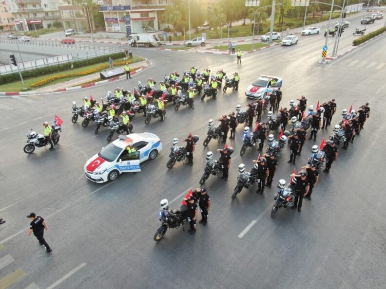 Mersin polisi, 19 Mayıs Atatürk’ü Anma, Gençlik ve Spor Bayramı kutlamaları kapsamında saat 19.19’da Üniversite Caddesi’nde yolu trafiğe kapatarak İstiklal Marşı’nı okudu. Polislere çevreden geçen vatandaşlar da destek verirken, etkinlik büyük beğeni topladı.